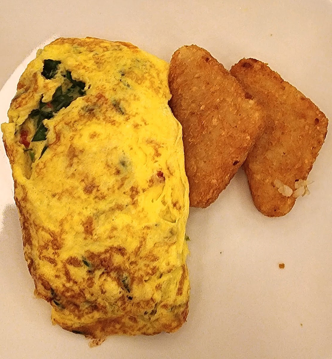 Tasty late night dinner for us & breakfast time for them Definitely a must if you are craving diner food but don’t want to smell! Clean, food came out hot, and right in the hotel lobby! Service was a bit slow, however we expected that because it was early morning!